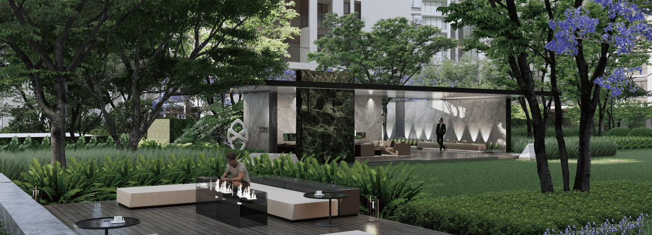 细节设计:商业文化中心采用广场水景+序列铺装+特色LOGO墙,搭配香樟、美丽异木棉,营造“步步进阶”的归家仪式,提升居住尊崇感。