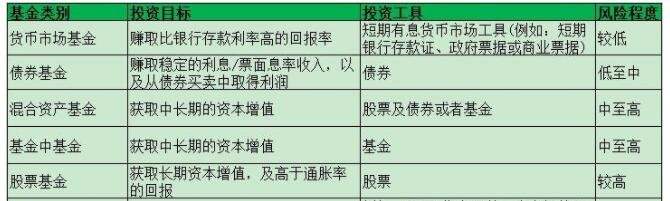 2、要选择老的基金不要选择新的基金。新的基金没有历史业绩可以进行参考,再加上新手的预判能力不是很好,所以来说还是选择来的基金比较好。一只基金好不好,老基金很容易判断。基金类别如下图: