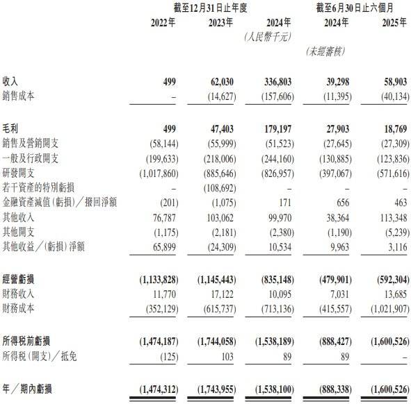 截至2022年、2023年及2024年12月31日以及2025年6月30日,壁仞科技的收入分别为人民币0.5百万元、人民币62.0百万元、人民币336.8百万元及人民币58.9百万元,分别产生年内亏损人民币1,474.3百万元、人民币1,744.0百万元、人民币1,538.1百万元及人民币1,600.5百万元。