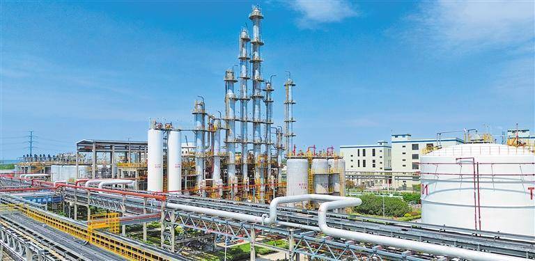 传化新材料板块突破稀土顺丁“卡脖子”技术,拥有全球首套稀土柔性生产装置,服务全球前十大轮胎企业。这是位于生产基地的反应塔装置。(资料图片)