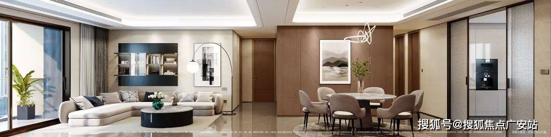 室内设计,秉承摩登东方的理念,设计以人、生活为中心,从空间本体和情感层面都回归生活,270度环幕采光,开放式会客厅设计,兼具尺度感与功能性。