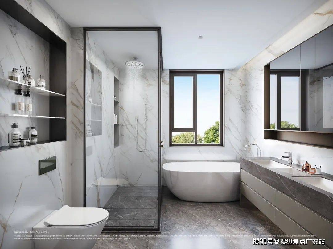 第二,3间套房的设计能满足各个家庭成员的隐私。尤其是主卧,尺度超大,并配置了双台盆+浴缸+淋浴+马桶豪华四件套,还有超大步入式衣帽间。