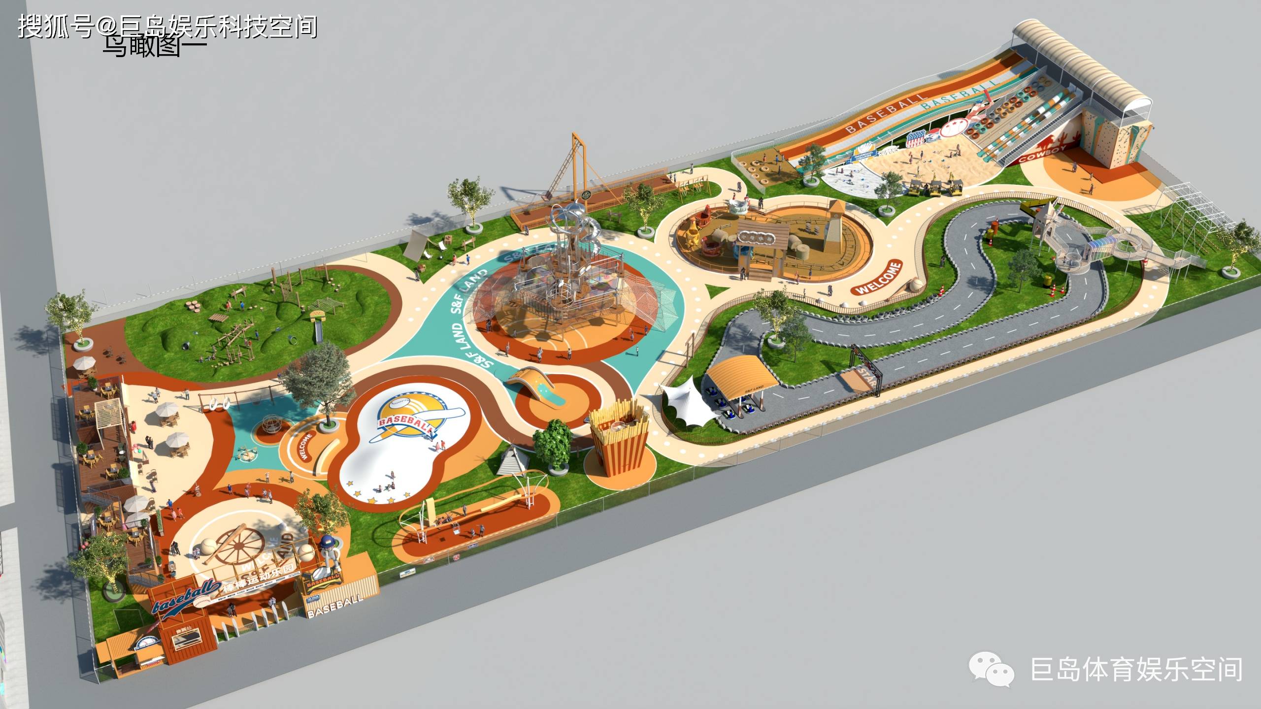 项目占地超7000㎡,以棒垒球运动为灵感原点,依托“轻体育+”核心理念,以美式运动文化为灵魂,融合自然探索与智能科技,构建六大主题区域,将竞技精神、自然美学与亲子互动深度融合,重新定义户外亲子娱乐。