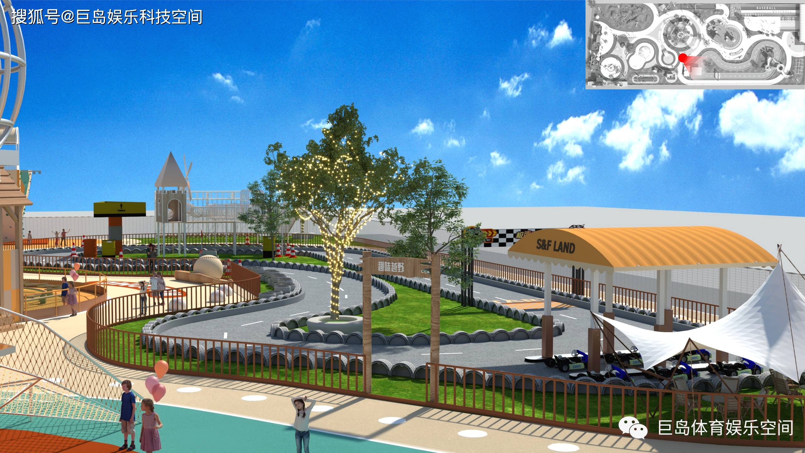 飞驰赛场:1:8比例缩小版棒球场赛道,卡丁车配备感应装置,碰撞护栏时触发“裁判哨声”;