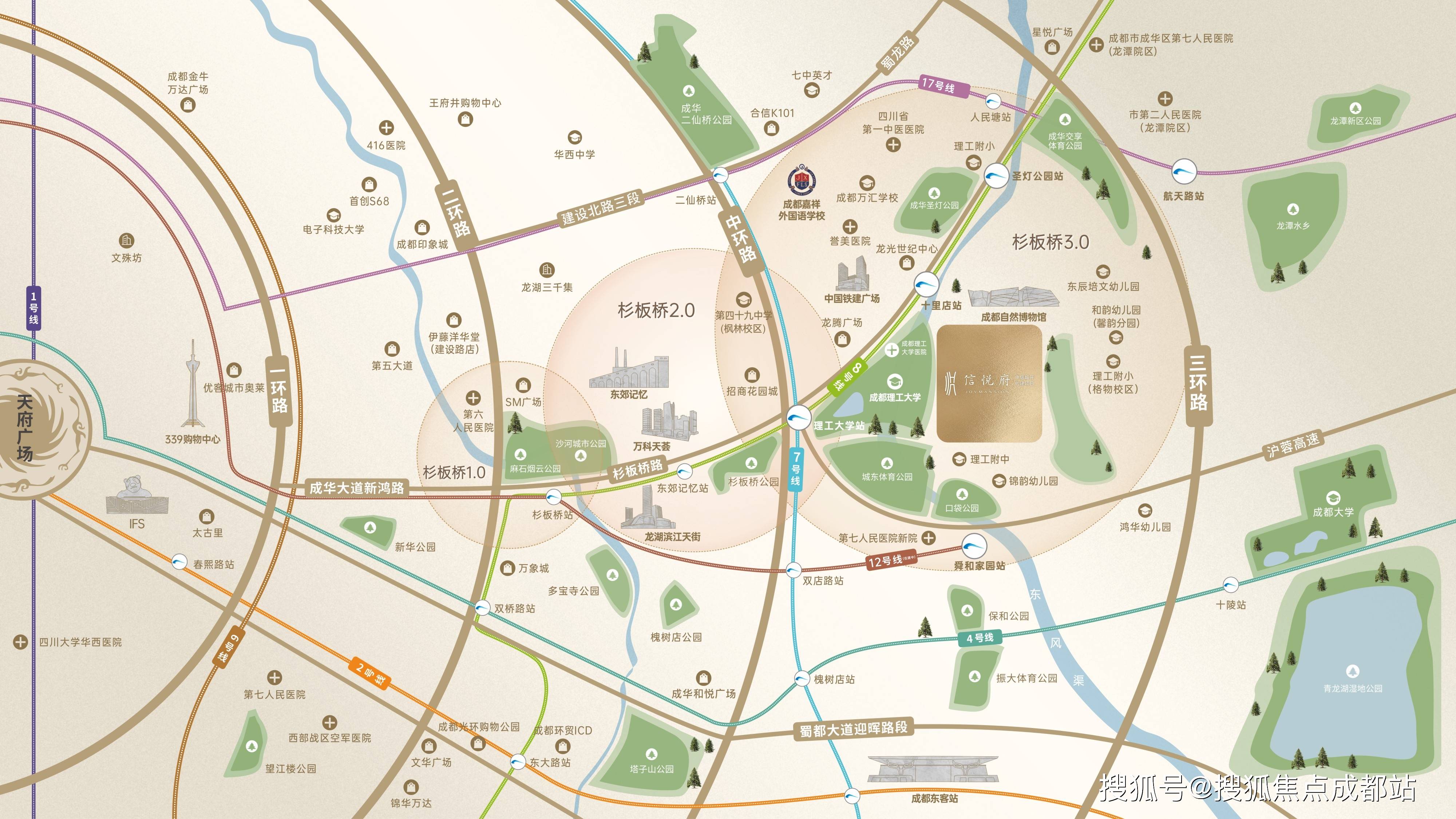 主城看中环——“金色中环”,既是成都城市发展的方向,又拥有不可复制的人文生态资源,更是串联起成都豪宅板块的发展脉络,地段价值不言而喻。