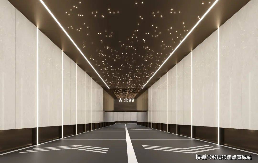 同级都在卷公区,古北99公区也十分硬核,宽境社区大门、四季景观,酒店式入户大堂/地库大堂、艺术星空顶车库入口