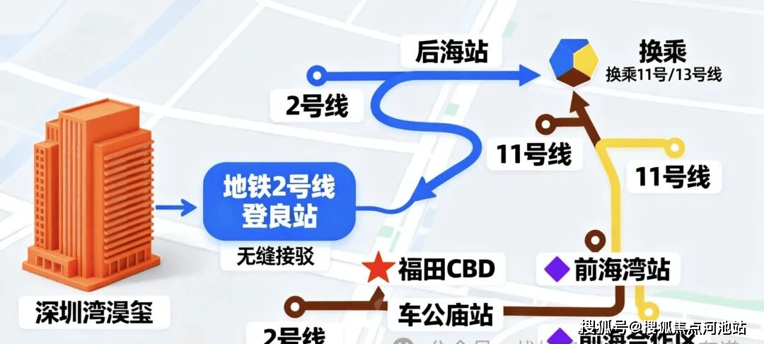 项目无缝接驳地铁2号线号地铁线站达福田CBD(车公庙站)、前海合作区(前海湾站)。