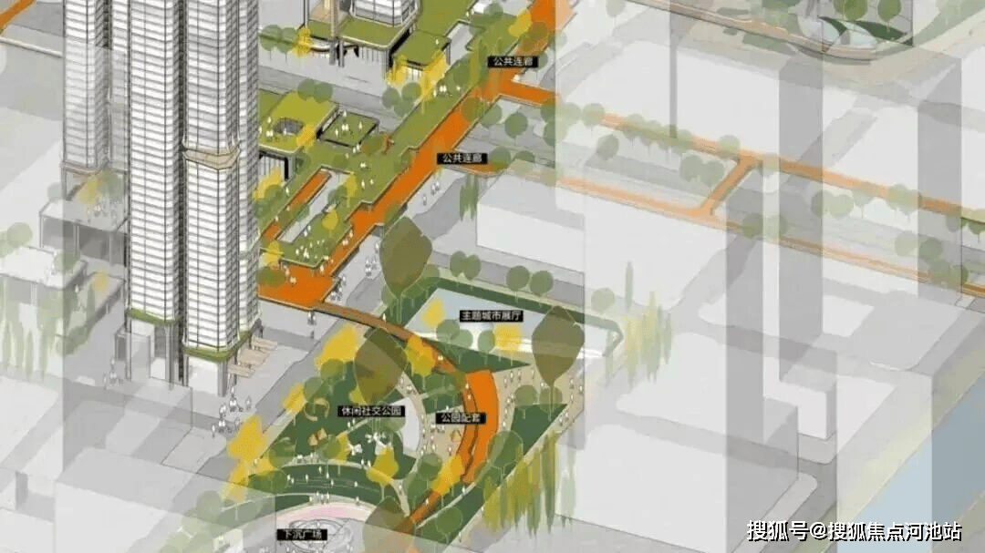 超高层项目常在底部设置简单底商,而本方案却创建了复合型立体底盘,整合商业与公园,通过步行系统实现连通。