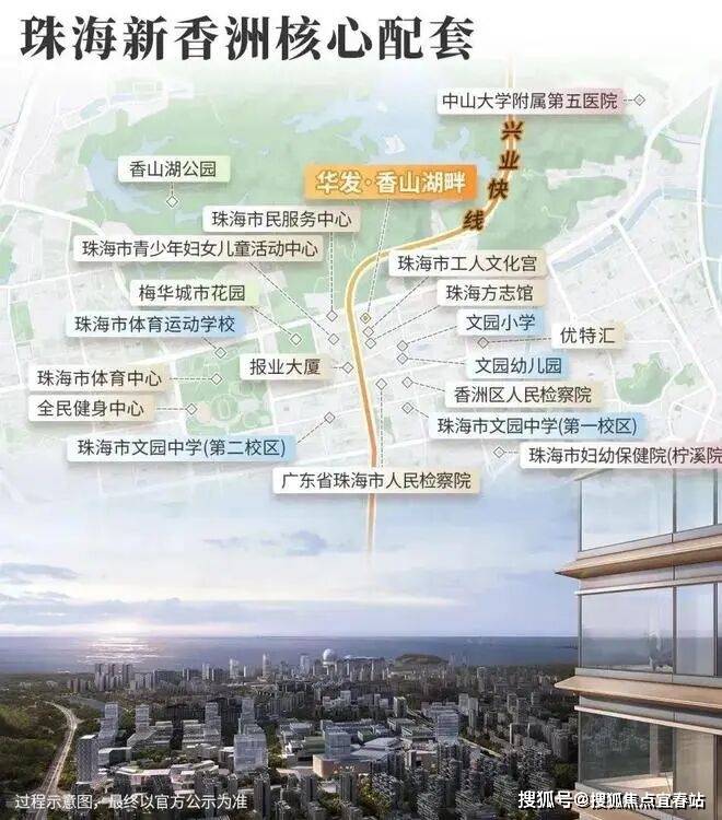 ,为珠海市区最后的超高层住宅,约180米超高天际封面作品。项目周边珠海市体育中心、方志馆及工人文化宫、市民服务中心、香山湖公园等重量级配套,触手可及。值得一提的是,其位处公立教育学府高地,众多名校环绕,