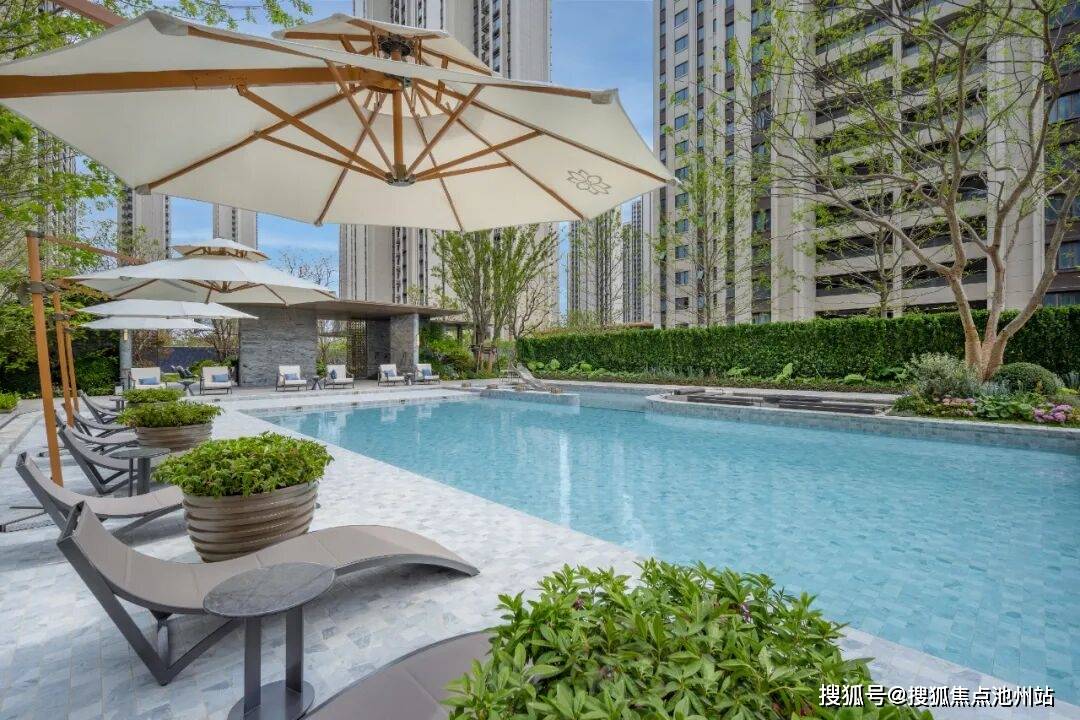 2. 国际感度假园林:约9000㎡中轴景观,并非简单绿化堆砌,而是一个 “可游、可赏、可憩”的立体度假系统,是以苏梅岛四季酒店为蓝本,通过泳池、银海枣树阵、纱幔廊架的有机组合,构建“回家即度假”的日常体验。