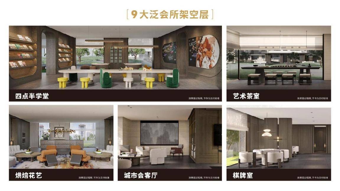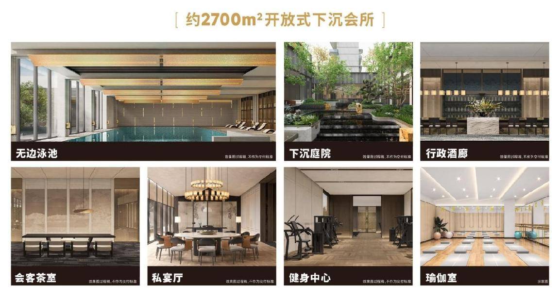 社区内部更是精心打造。9大栋栋奢装的架空层泛会所,涵盖了艺术、亲子、茶艺、总裁办公等全生命周期场景,满足所有家庭成员的需求。 约2700㎡的开放式下沉会所,由奢宅设计专家名谷设计操刀,内含行政酒廊、无边泳池、私宴厅、健身房等,是专属于峯层人物的社交与休闲主场,为业主提供了顶级的豪宅会所体验。