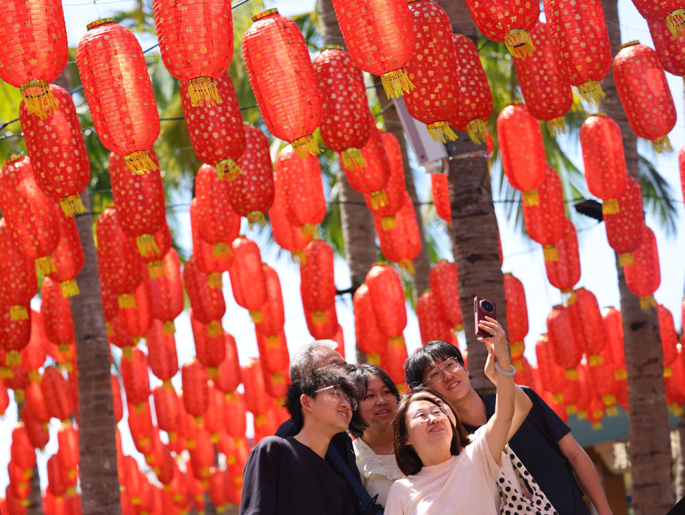 2月16日,游客在海南三亚南山文化旅游区游览。新华社发(陈文武 摄)