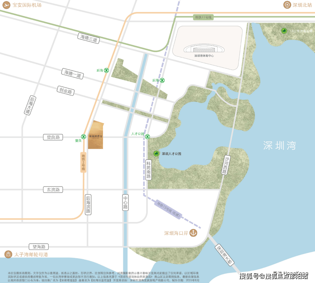 深圳湾澐玺花园位于南山区粤海街道逸湖二街与后海滨路交汇处,占地3.85万㎡,总建面26.3万㎡,涵盖住宅(17.7万㎡)、商务公寓(7万㎡)、商业(1万㎡)及幼儿园等公配。