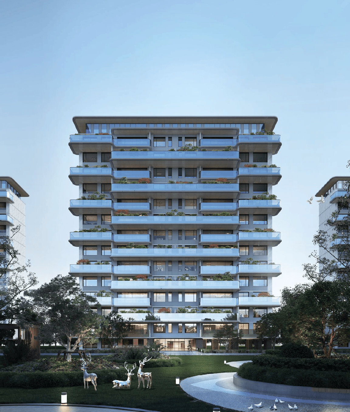 归家即是尊崇体验:地下车库参考了劳斯莱斯星空顶的概念打造,豪华双入户大堂从物理空间到精神感受都重新定义了高端。建筑外立面采用干挂铝板和玻璃,线条流畅现代,南北双阳台的设计让你拥有360度的环幕视野。
